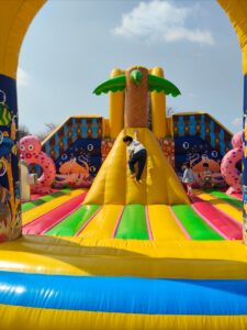 子どももいっぱい集まっていて、ソリゲレンデをしたり、子どもたちに大人気のアトラクション(ふわふわスライダー)をしたり、とても楽しそうでした😀